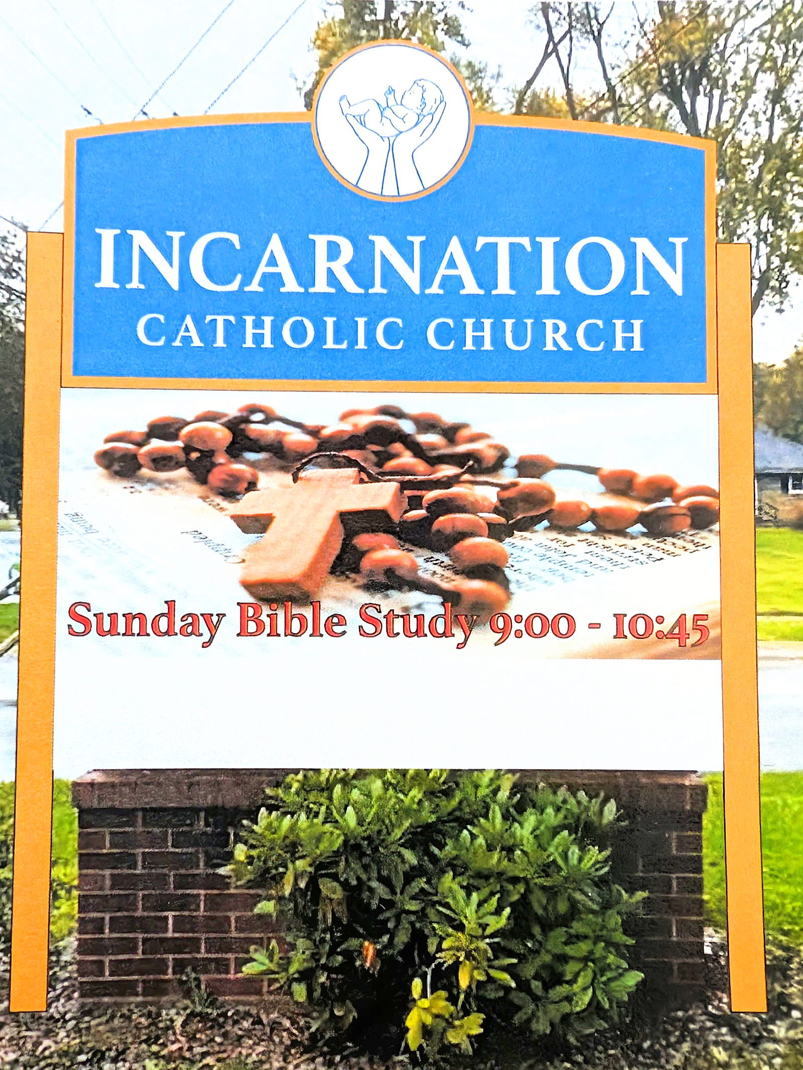 This year we are participating in the #iGIVECATHOLIC campaign. Our parish project is to raise the funds to convert our Analogue Sign that our wonderful Carol Metcalfe has to manually change in all weather conditions for each and every update to a Digital Sign that we can update remotely in real-time with a high resolution, easy to read display, with all the latest info for Mass Times, Events, Weather Related Issues and more! We are in the process of gathering quotes and for the sign and its design options to best reflect our parish. We are looking forward to seeing how this wonderful new sign will help serve as a tool for our mission to share the hope we have in Christ, grow our parish family, and keep our parish and greater community informed about Mass Times, Special Events, and our vibrant parish life. Here is a glimpse of what we have now and one design example of what we are hoping to have once this campaign is completed and the funds are raised: