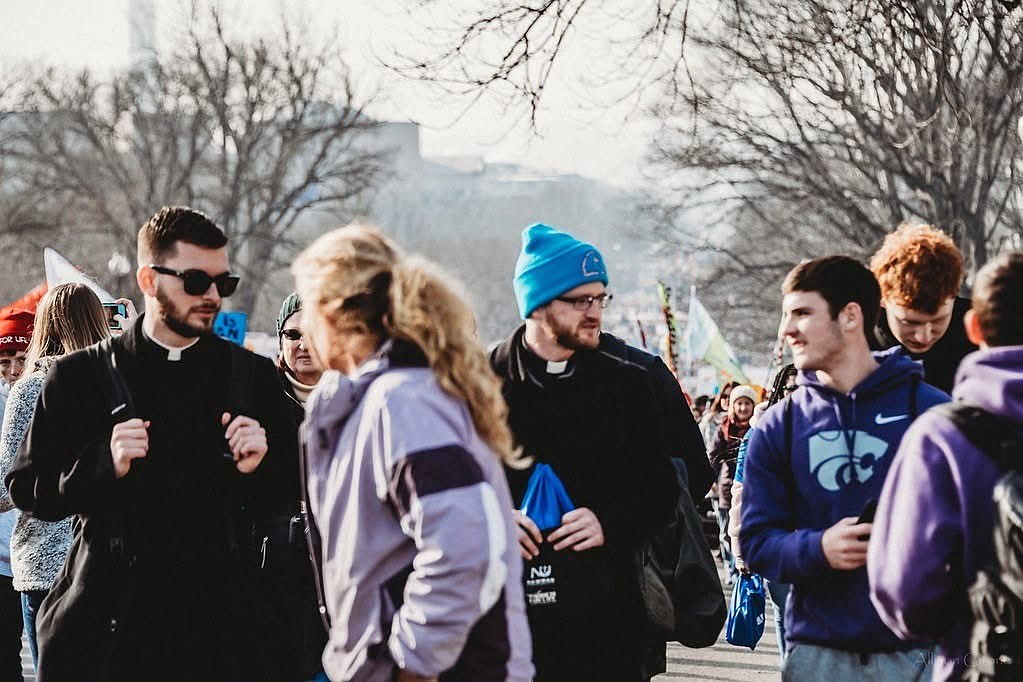 Rev. Jesus Banuelos joins students from the Diocese of Wichita at the March for Life.