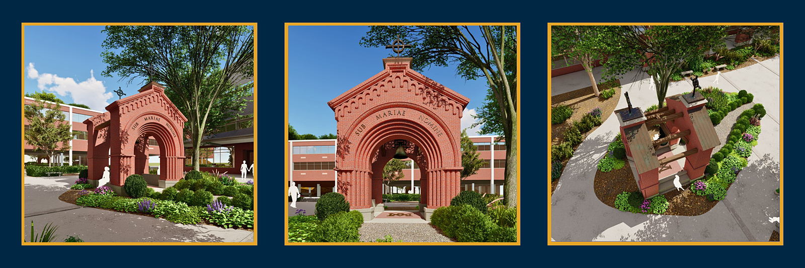Today we have an extraordinary opportunity to give the bell a new home at the heart of campus. In partnership with J. Ryan Duffey Architect, Marist has developed a vision for a permanent Bell Chapel structure in Alumni Plaza, framed by the Ivy Street Center, the Chanel Building, and Woodridge Center. The design pays tribute to our school’s rich history by incorporating elements of our original Ivy Street campus while embracing features that reflect the Marist community of today.