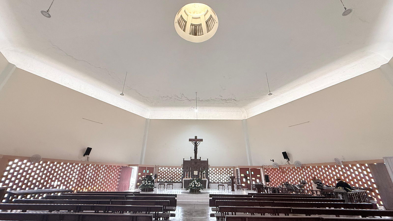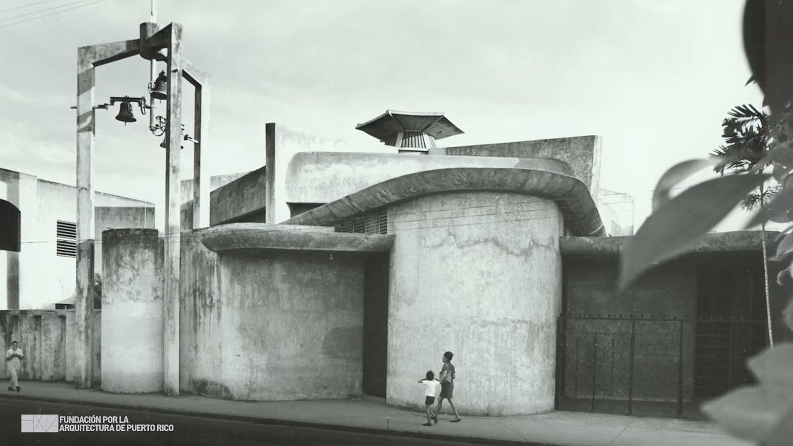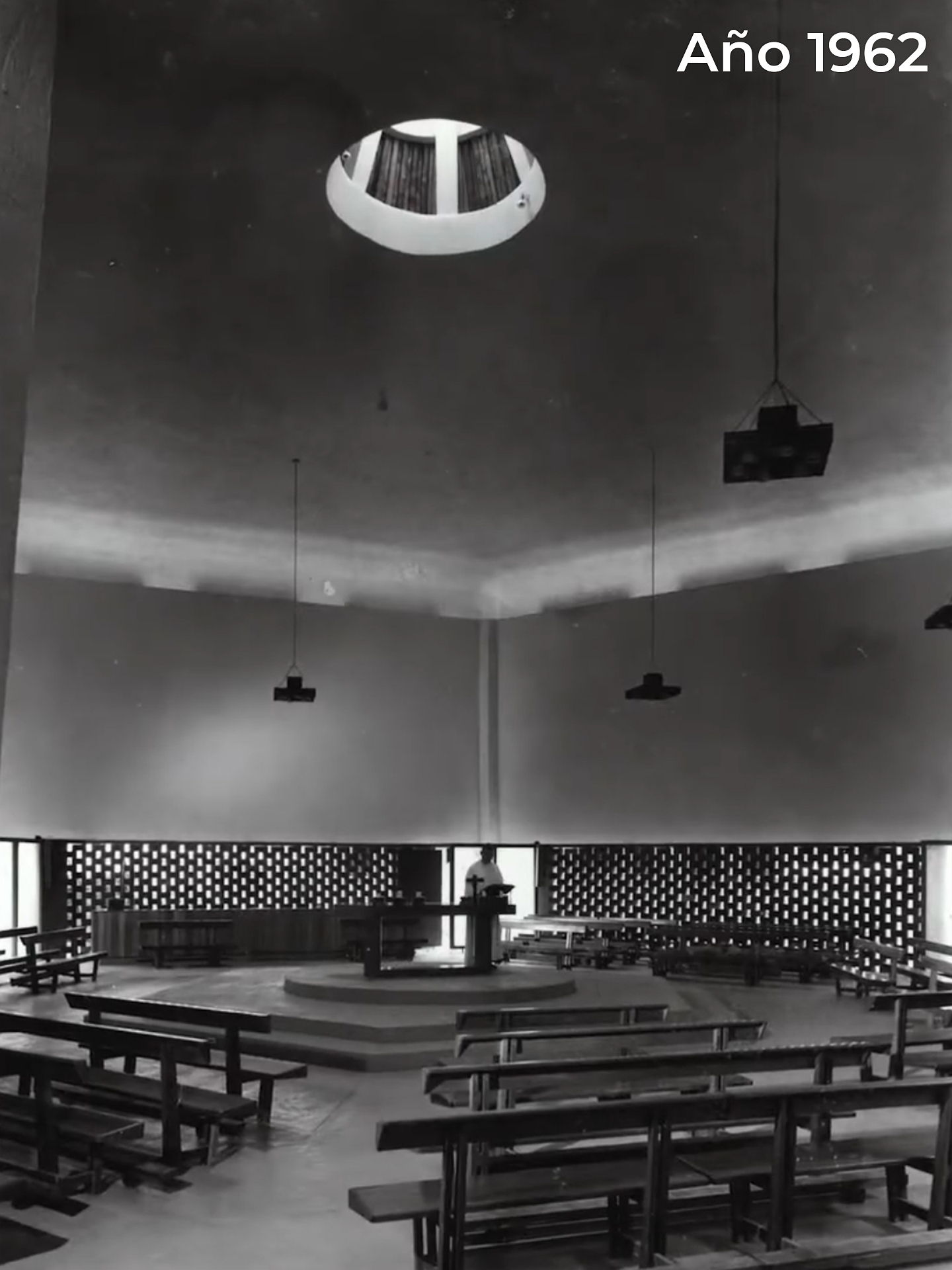 Altar en el Centro de la Parroquia Nuestra Señora Del Carmen. Foto del año 1962. Idea de construcción original del Arquitecto Henry Klumb. • Altar in the center of Our Lady of Mount Carmel Parish. Photo from 1962. Original construction idea by architect Henry Klumb.