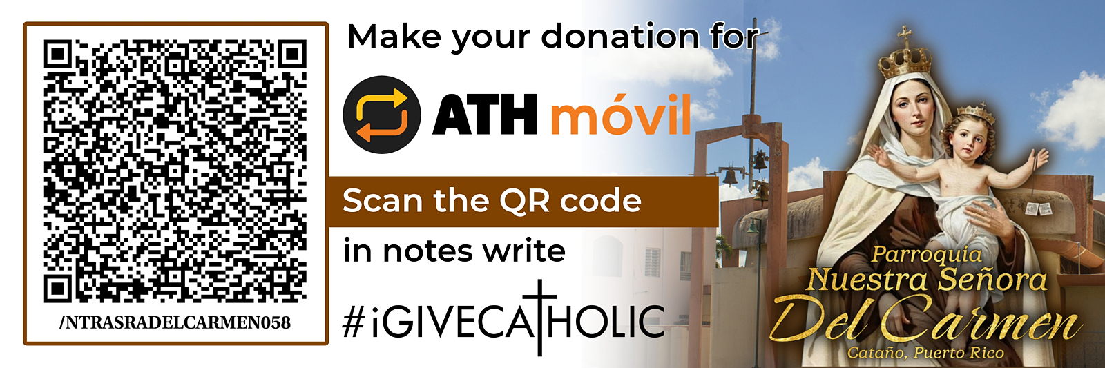 We also have other ways to donate:1. By check or money order made payable to: Parroquia Nuestra Señora Del Carmen, P.O. Box 427, Cataño, PR 00963.