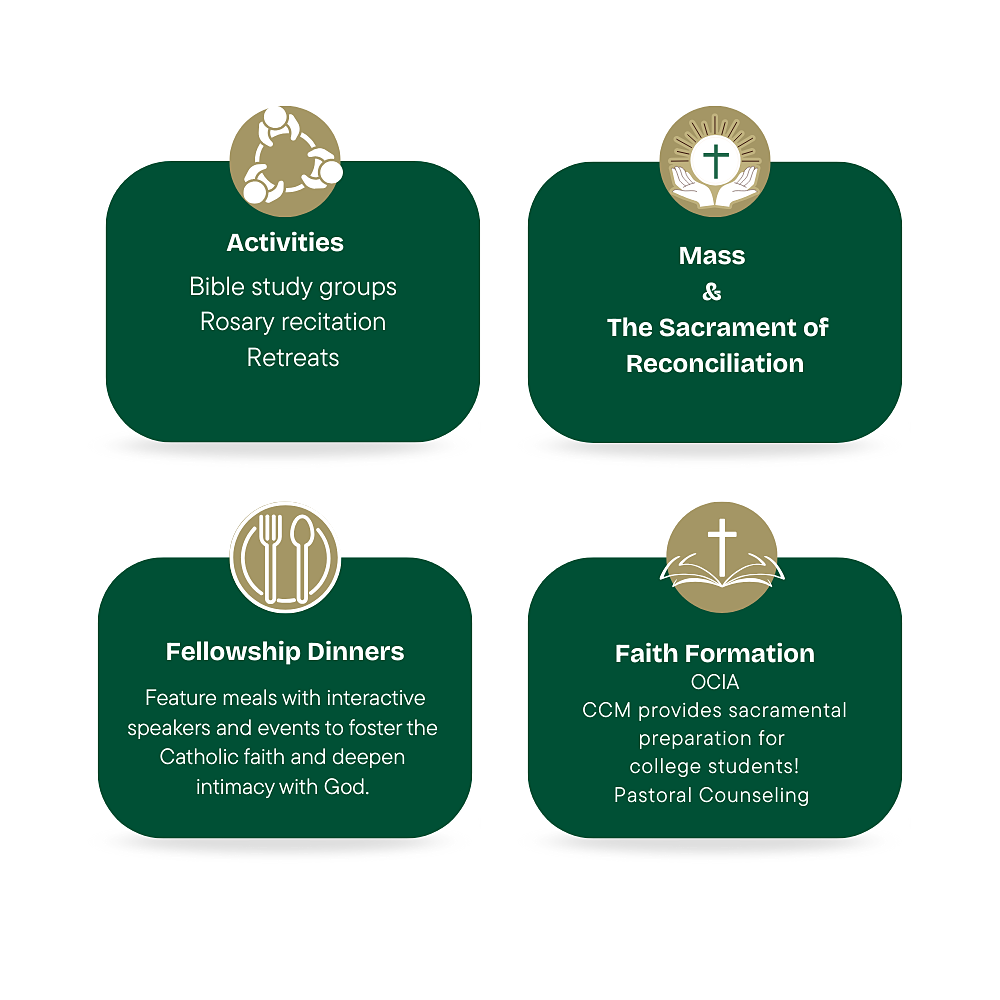 Dedicated to the mission of Jesus Christ, Catholic Campus Ministry evangelizes through personal and communal experiences for the formation of lifelong disciples.