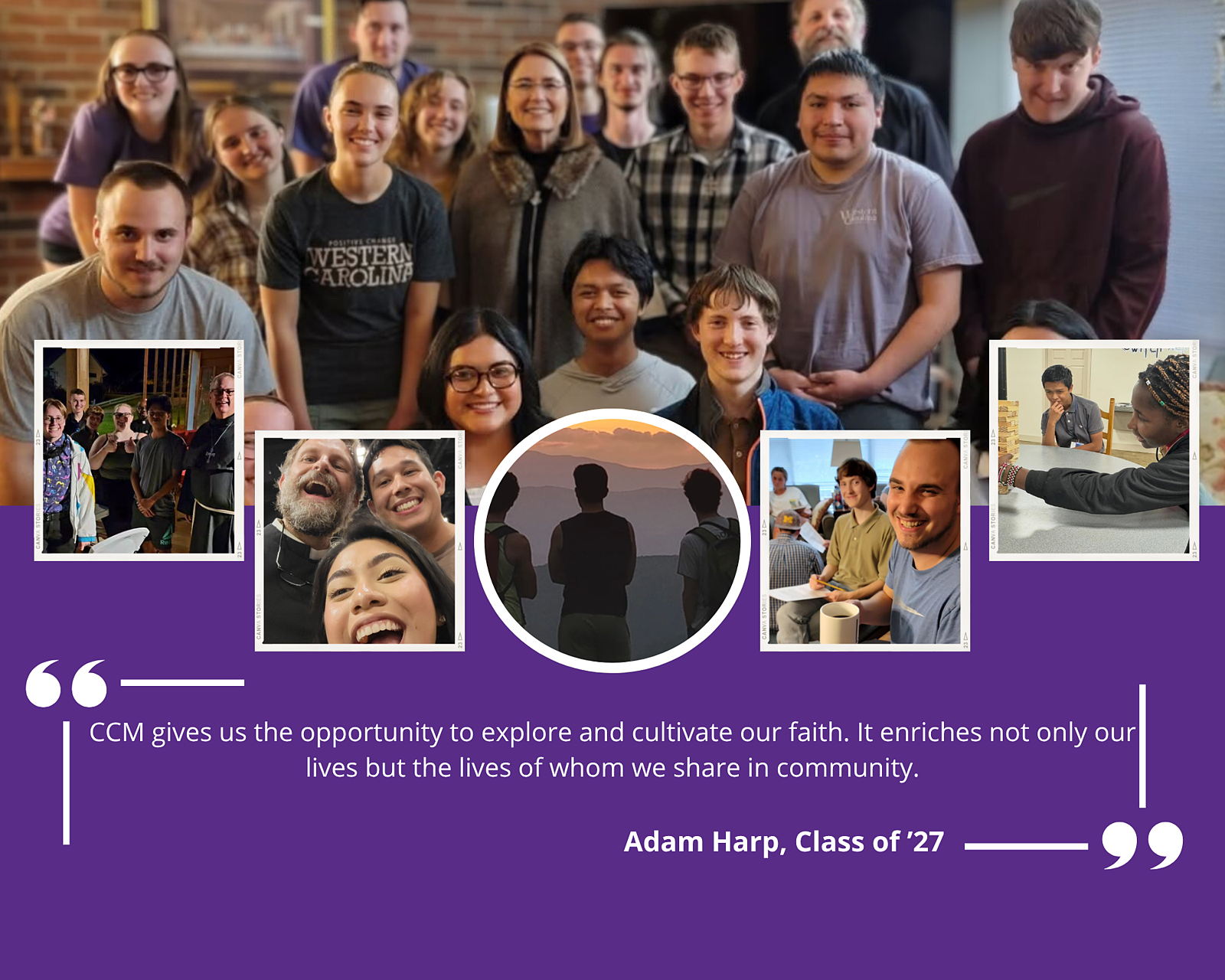 Forming disciples of Jesus Christ in the Catholic tradition on the campus of Western Carolina University, Catholic Campus Ministry provides for the spiritual needs of students, faculty and staff at WCU, both Catholics and non-Catholics. The CCM Center is located on Forest Hills Rd. (behind the football stadium). All are welcome!