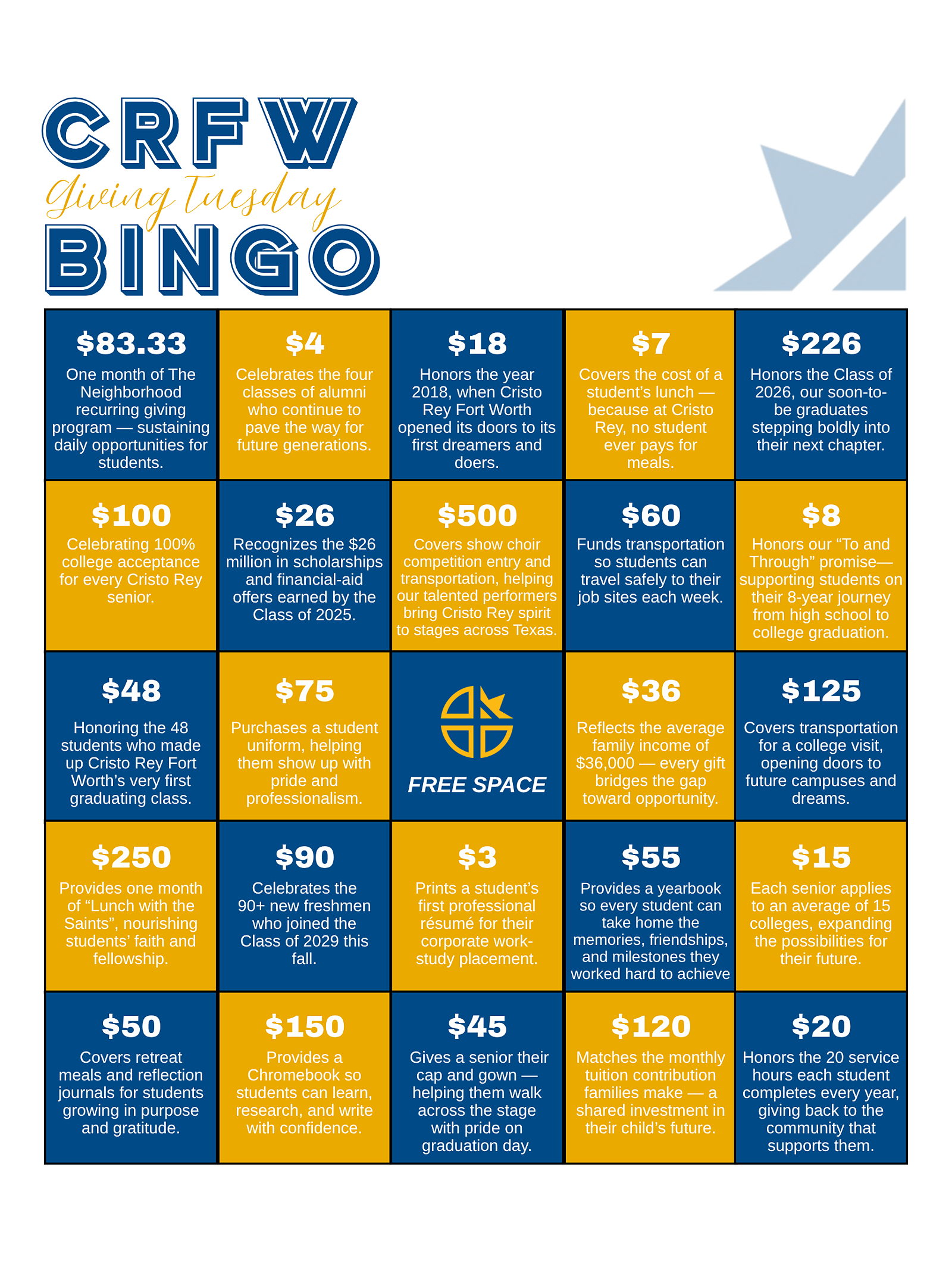 Cristo Rey Fort Worth provides the kind of education that changes trajectories. But we can't do it alone. Your support on Giving Tuesday helps us prepare hard-working young people to become men and women of faith, purpose, and service.