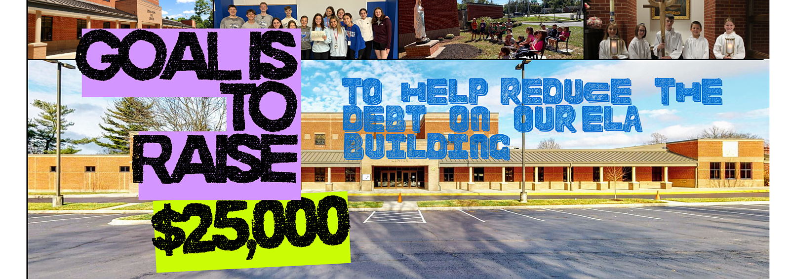 This year, we invite you to join us in an even greater mission: paying down the debt on our Education Life Center (ELC)—the heart of our school and parish life. Our remaining mortgage is $1.1 million, and each year we spend more than $67,000 in annual interest payments.
