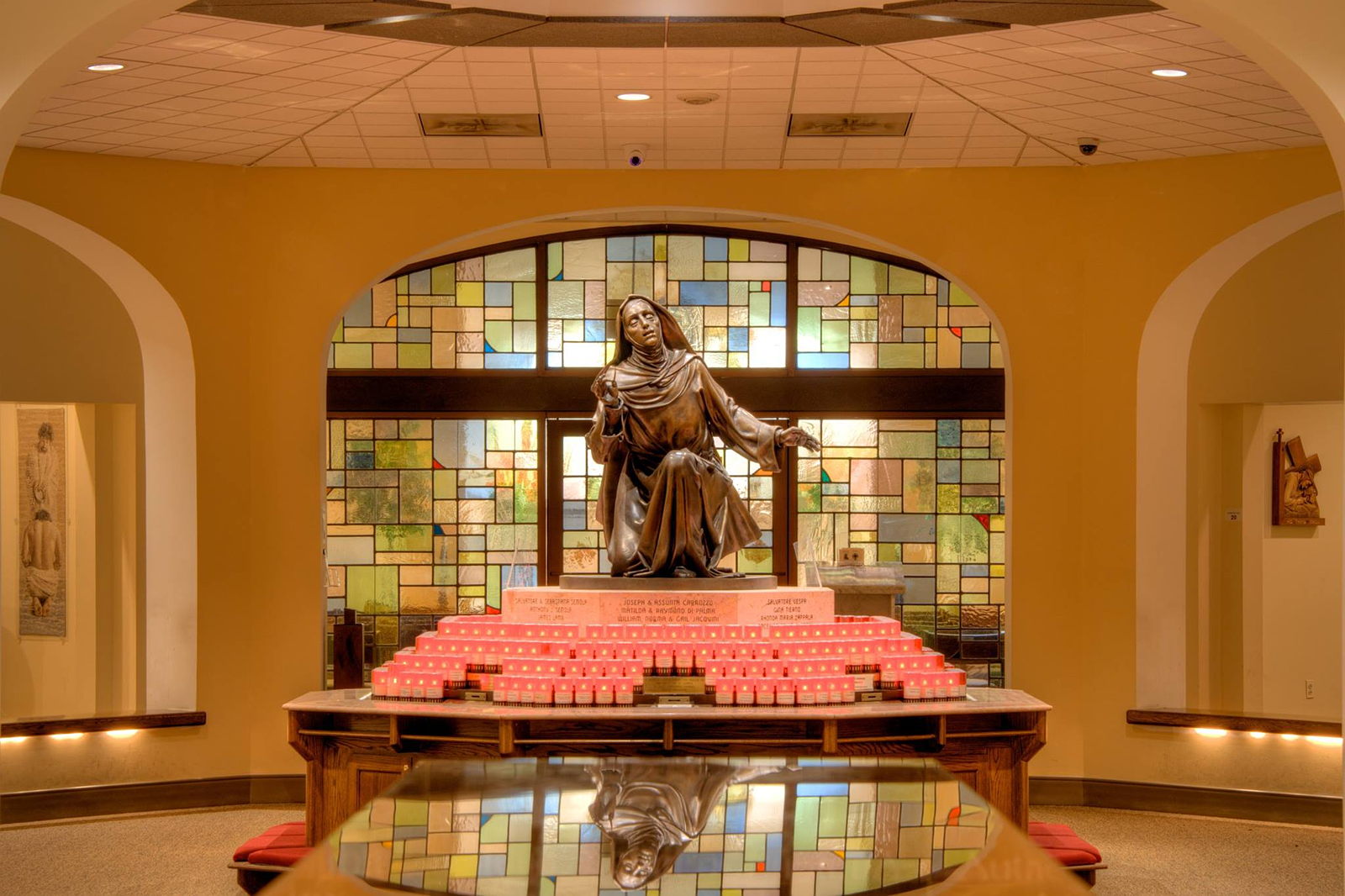 - Illuminate the stunning mural of Saint Rita in the Upper Shrine.