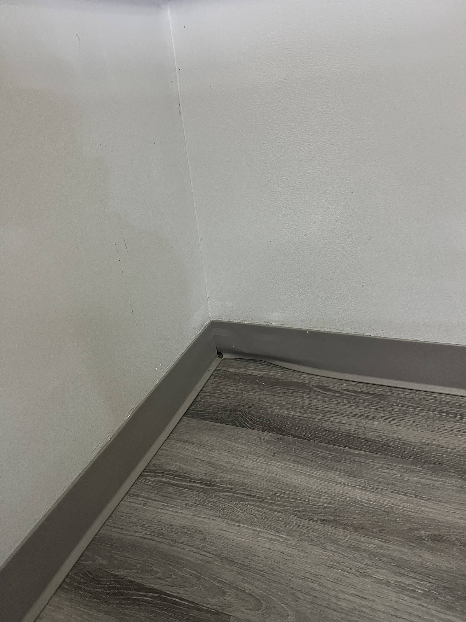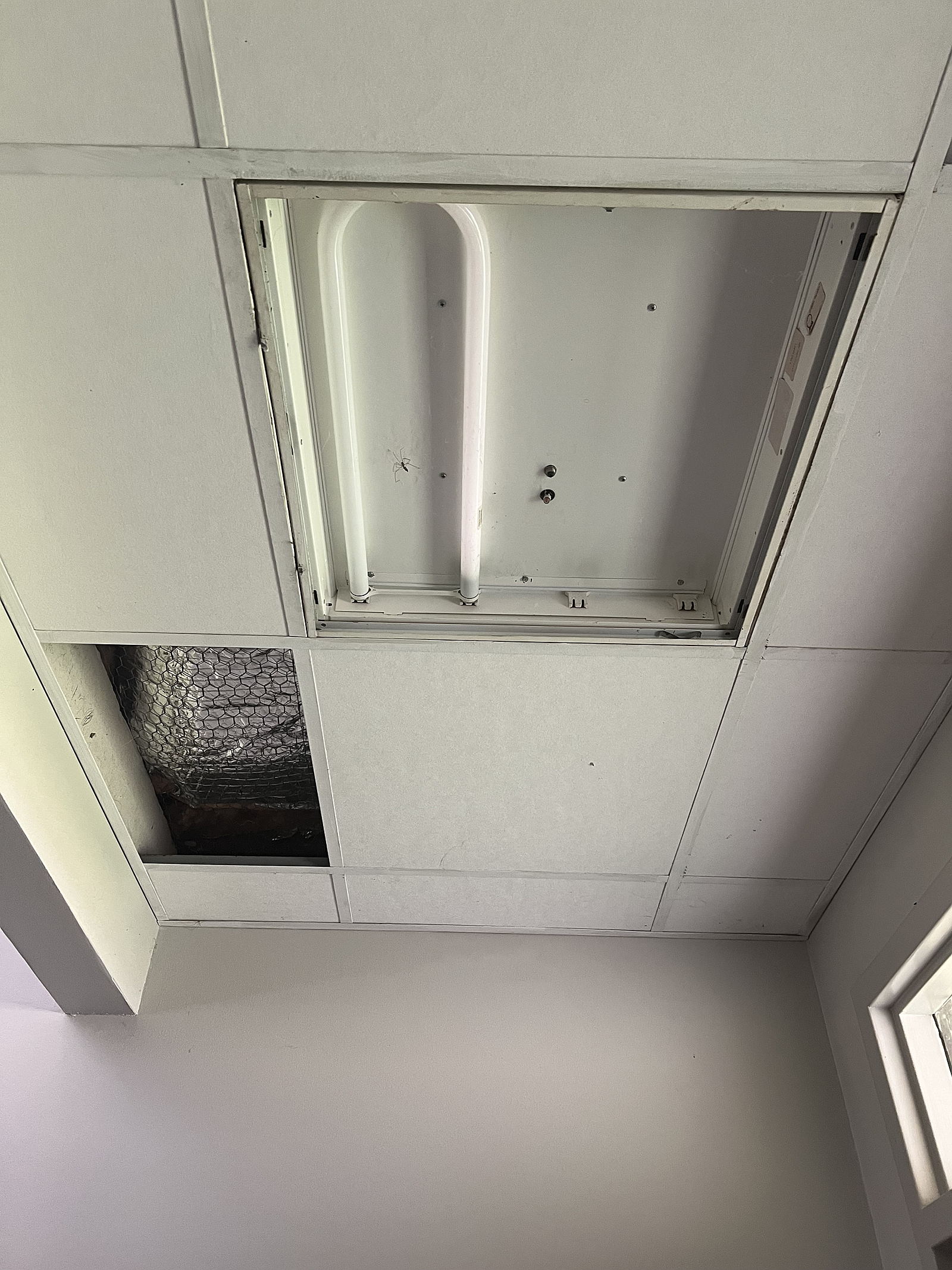2. Replace ceiling lights, ceiling tiles and repair water damage along the baseboards: