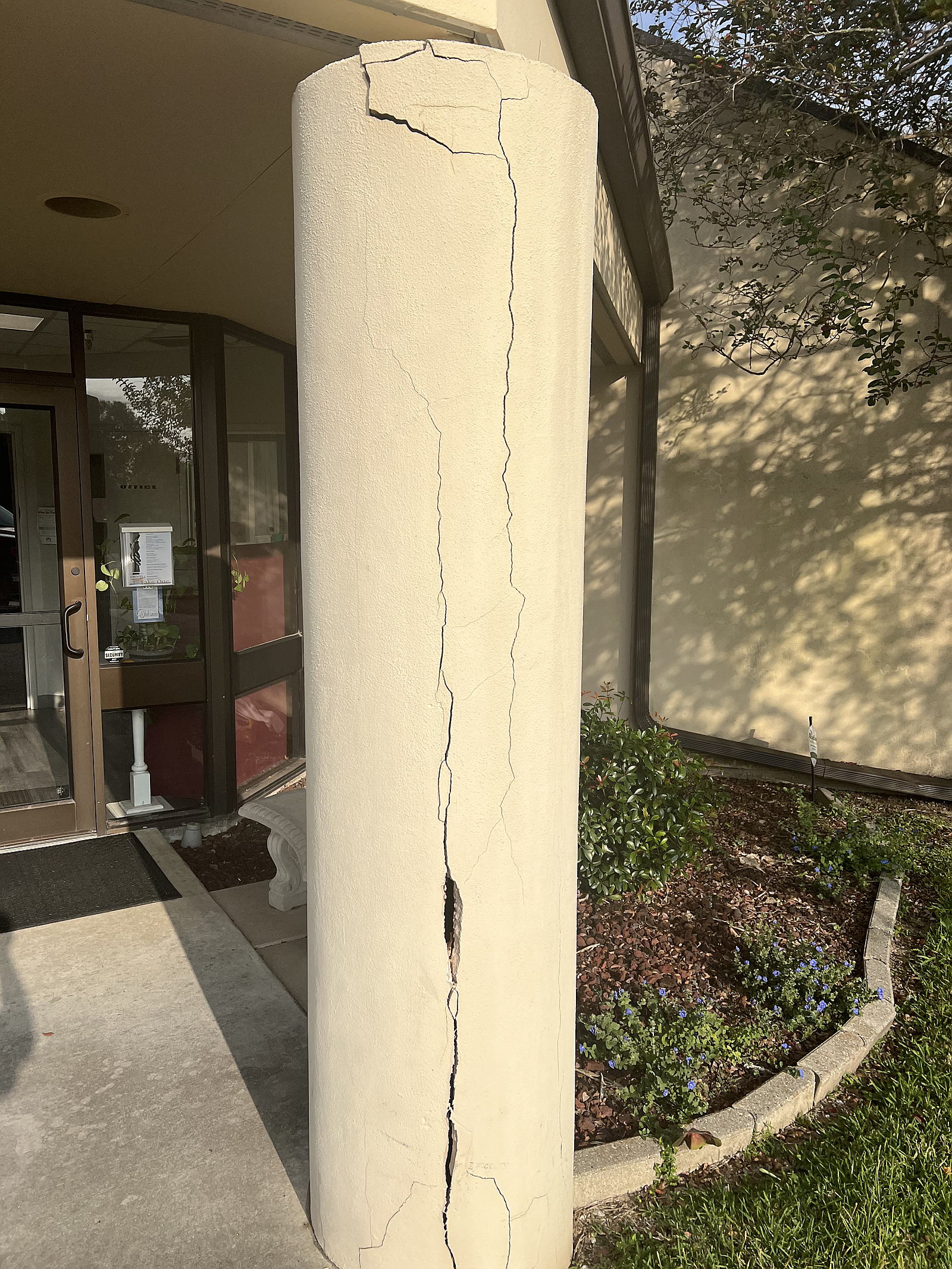 Through this campaign we would like to remove the cracked stucco on the columns and replace with bricks that match the road sign at the entrance of the parking lot. We also have to make repairs in one of our meeting rooms as well as ceiling lights and tile replacement.
