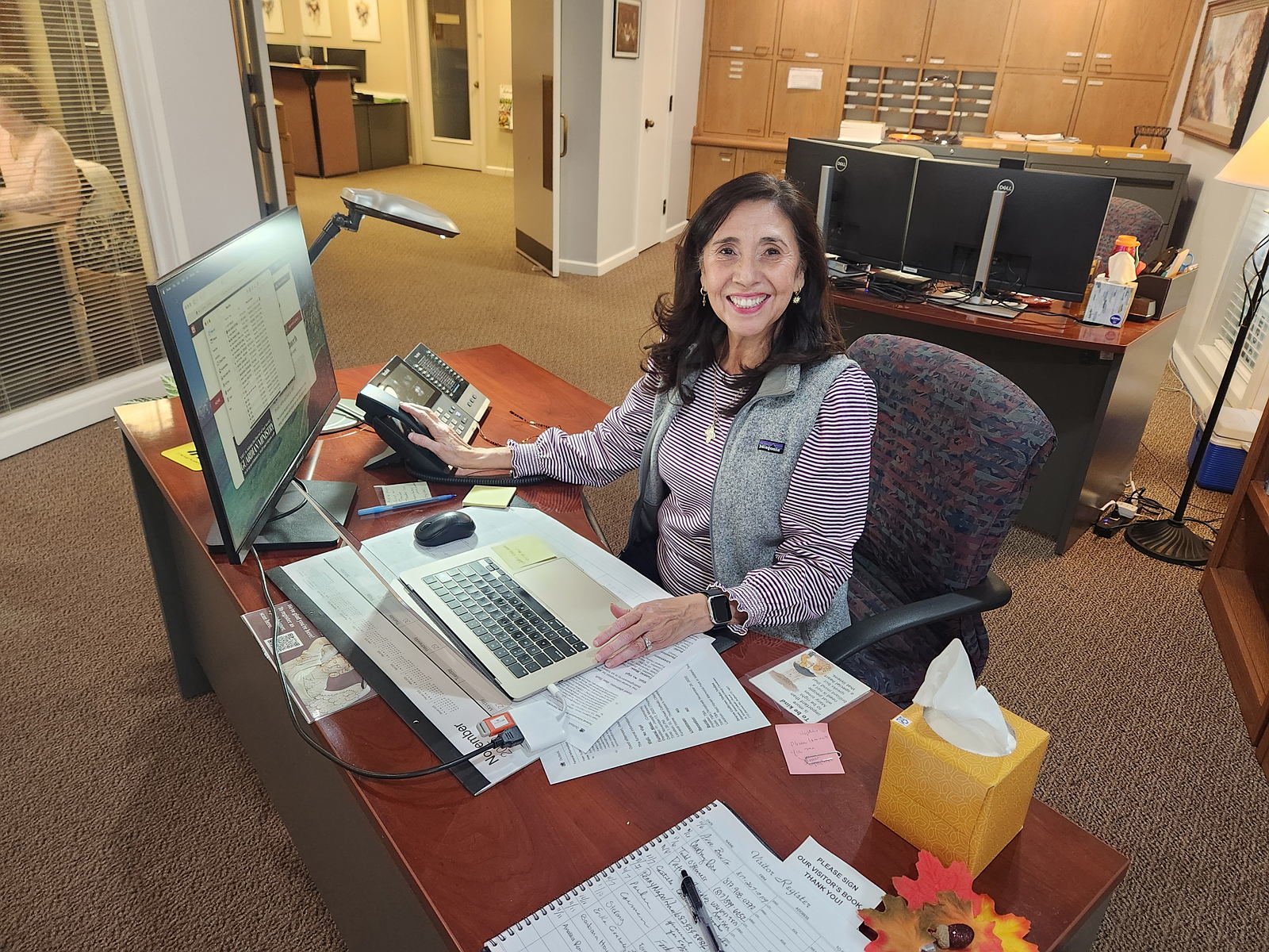 SMCC reception volunteers work weekdays from 9 am - 3 pm answering phones, assisting guests, and helping office staff with a variety of activities such as giving candy to SMA kids for Halloween (photo above), researching, bulletin assistance, activity management, and more. These ladies are the first voices/faces guests will hear/see when they contact St. Michael. All donations to this page will be directed to support the parish goal of raising $15,000 to enhance campus security. Thank you for your generosity! Reception volunteers are the first faces/voices guests see/hear when they come to the office. Our reception volunteers are Grace Angulo-Coe, Kathy Berndt, Michelle Cota, Malia Duffy, Louise Molinar, Vicki Pals, Laura Person, Martina Rodriguez, and Susan Sebazco.